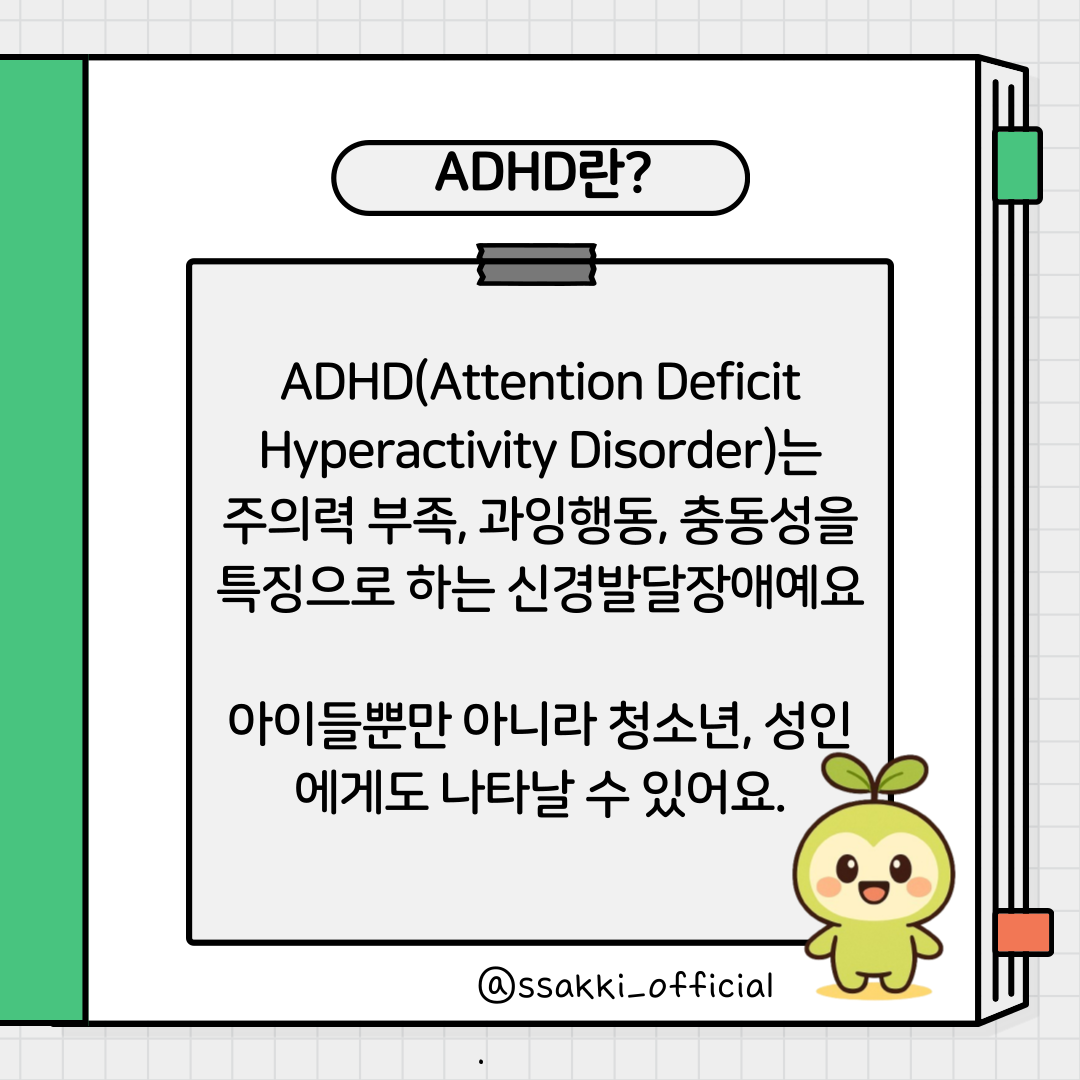 주의력 부족, 과잉행동, 충동성을 특징으로 하는 신경발달장애예요.